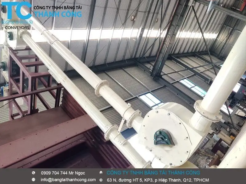 - Vật liệu dạng bột di chuyển theo đường thẳng dọc theo đường ống kín trong không gian ba chiều, có thể rẽ vuông góc hoặc vận chuyển theo hình chữ Z, và có thể thay đổi hướng khi cần thiết.