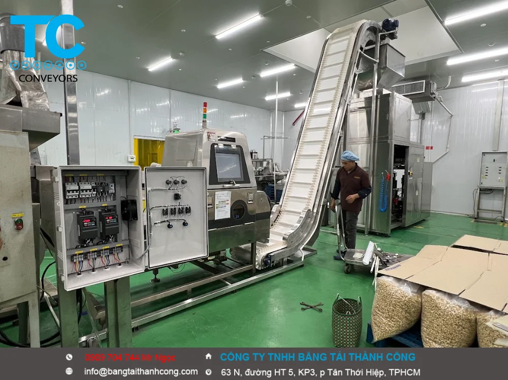 - Hệ thống băng tải hạt điều là giải pháp then chốt giúp kết nối và tự động hóa toàn bộ quy trình sản xuất, từ khâu sơ chế hạt thô đến khi đóng gói thành phẩm. Việc sử dụng hệ thống này giúp doanh nghiệp tối ưu hóa năng suất, giảm chi phí nhân công và đảm bảo vệ sinh an toàn thực phẩm theo tiêu chuẩn quốc tế.